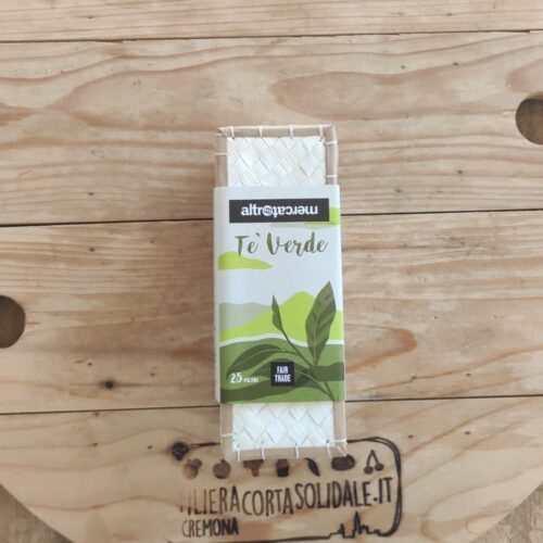 Tè verde varietà Green Fannings, coltivato in quota sull'isola di Ceylon (Sri Lanka). Confezione in fibra naturale da 25 filtri. Naturalmente ricco di polifenoli, ha un sapore aromatico e un delicato sapore erbaceo. Il tè verde "Green Fannings" Altromercato è originario dell'isola di Ceylon, dove viene coltivato ad un'altitudine tra i 600 e i 1.200 metri. Dopo la raccolta e la selezione, le foglie di tè verde sono lasciate appassire, ma non fermentare come avviene per il tè nero. In tal modo, la clorofilla presente nelle foglie non viene alterata e il tè conserva il suo caratteristico colore verde scuro e il suo naturale contenuto di polifenoli, dalle note proprietà antiossidanti. Con la setacciatura, infine, si ottengono i frammenti (Green Fannings) contenuti nei filtri. Ingredienti commercio equo: 100%. Gli ingredienti equosolidali sono importati da Altromercato, via F. Crispi 9, Bolzano. -