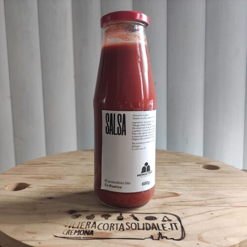 Passata di pomodoro da agricoltura biologica, confezionata in vaso di vetro da 680 g.